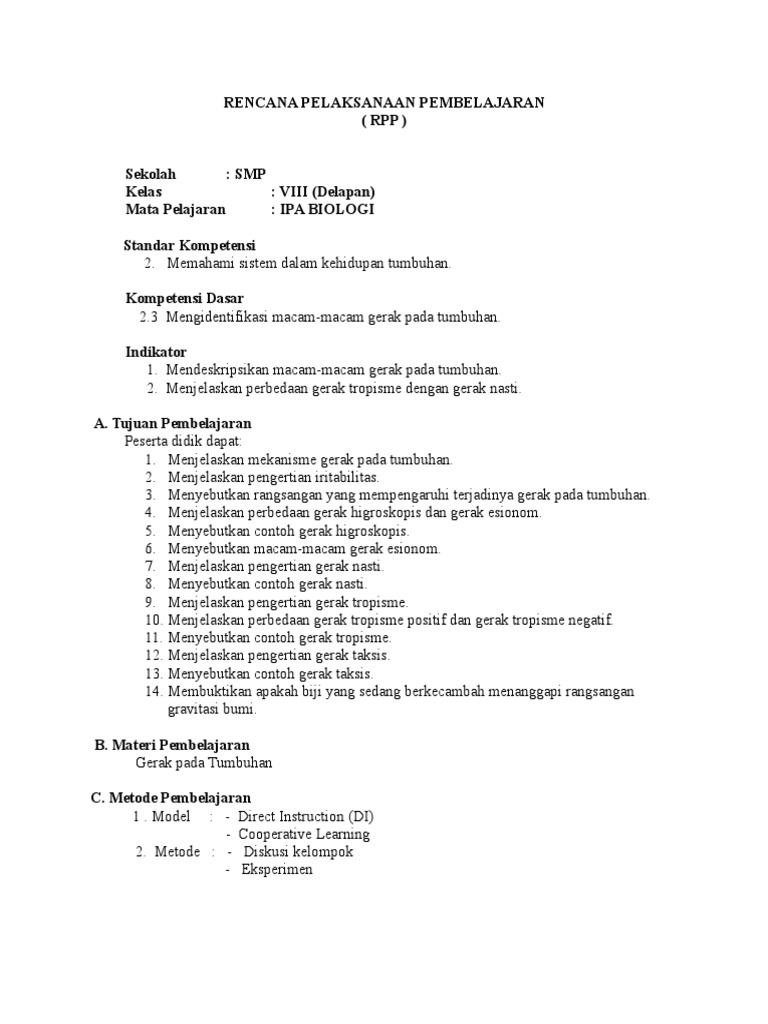 Soal Gerak Tumbuhan Kelas Viii Smp Info Pendidikan Dan Biologi