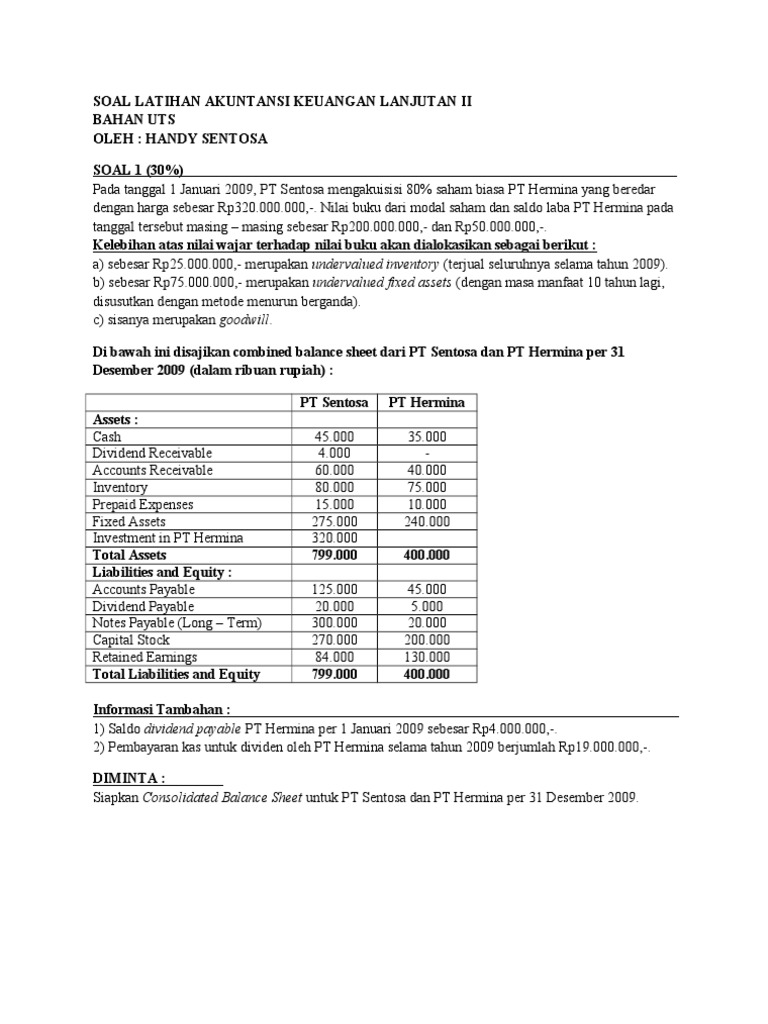 Soal Latihan Akuntansi Keuangan Lanjutan I Bahan Uas