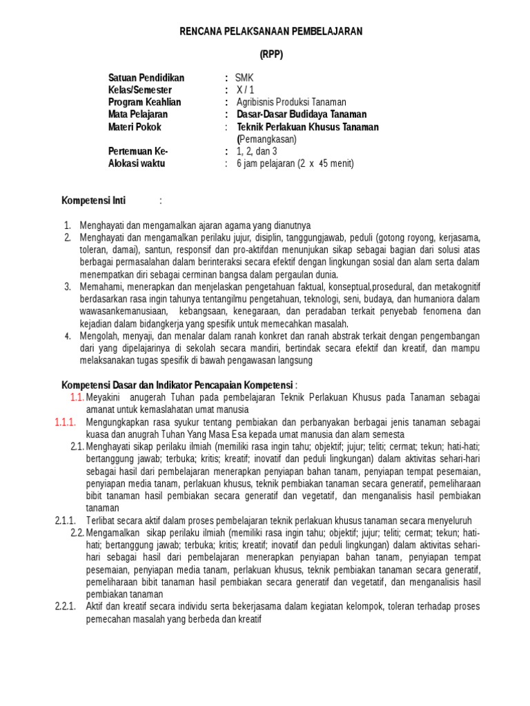 Pasal 1 1 Standar Kompetensi Lulusan Pendidikan Dasar dan Menengah dipakai sebagai pola utama pengembangan standar isi standar proses standar evaluasi pendidikan standar pendidik dan tenaga kependidikan standar sarana dan prasarana standar pengelolaan dan. Download Permendikbud Nomor 24 Tahun 2019 Tentang Kompetensi Inti dan Kompetensi Dasar Pelajaran pada Kurikulum 2019 SDMI SMPMTs SMAMA dan SMKMAK_Peraturan Menteri Pendidikan Dan Kebudayaan Republik Indonesia Nomor 24 Tahun 2019 Tentang Kompetensi Inti Dan Kompetensi Dasar Pelajaran Pada Kurikulum 2019 Pada Pendidikan Dasar Dan Pendidikan. RPP SMK Pertanian Kelas 10 Tema Dasar dasar budidaya tanaman semester 1 Kurikulum 2013 Revisi 2017 Sunday June 16 2019 Add Comment Edit RPP yang Anda buat harus di sesuai dengan ketentuan permendikbud nomor 22 tahun 2016 yang harus menyisipkan komponen Literasi PPK HOTS dan 4C.