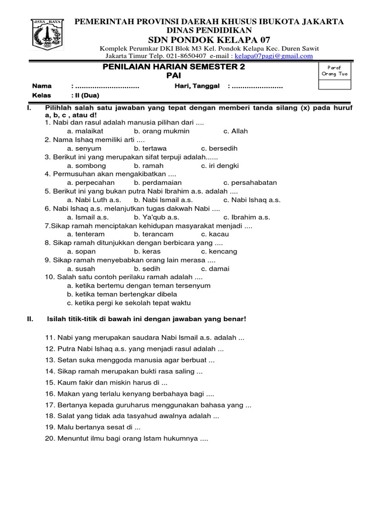 Soal Pai Kelas 2 Nabi Ishaq Docx