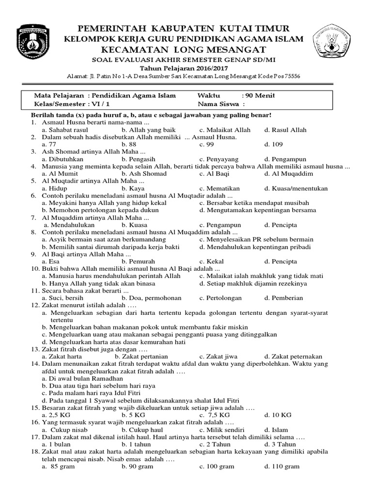 Soal Ulangan Harian Pai Kelas 6 Semester 2 K 13 Sekolahdasar Net