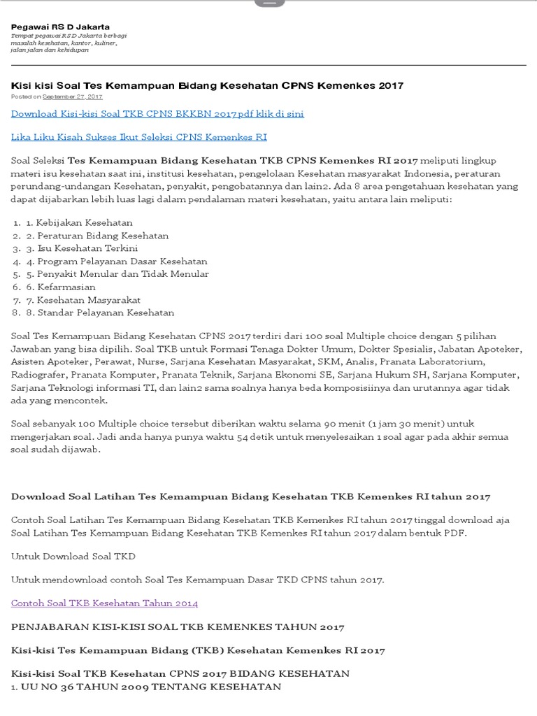 Kisi Kisi Soal Tes Kemampuan Bidang Kesehatan Cpns Kemenkes 2017 Pegawai Rs D Jakarta