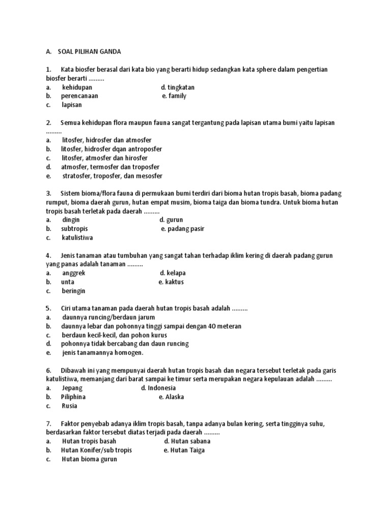 Kumpulan soal materi bioma pada biologi. Soal biologi kelas 10 Part 2 Contoh Soal Biologi Tulisan ini merupakan kumpulan soal pilihan kelas x semester 2 beserta jawaban untuk siswa SMAMASederajat. Soal UTS BIOLOGI Kelas 12 SMAMA 35 Contoh Soal UTS BIOLOGI Kelas 12 SMAMA Semester Ganjil Terbaru - Bagi sahabat bospedia dimana saja berada yang ingin sekali mempelajari Soal UTS BIOLOGI Kelas 12 SMAMA ini adik adik bisa menguduh materi ini di bospedia dalam bentuk file doc. Sebelumnya soal nomor 1-15.