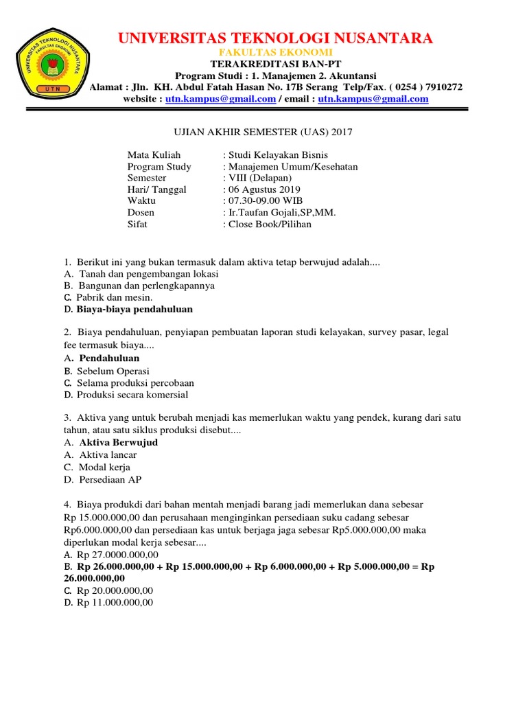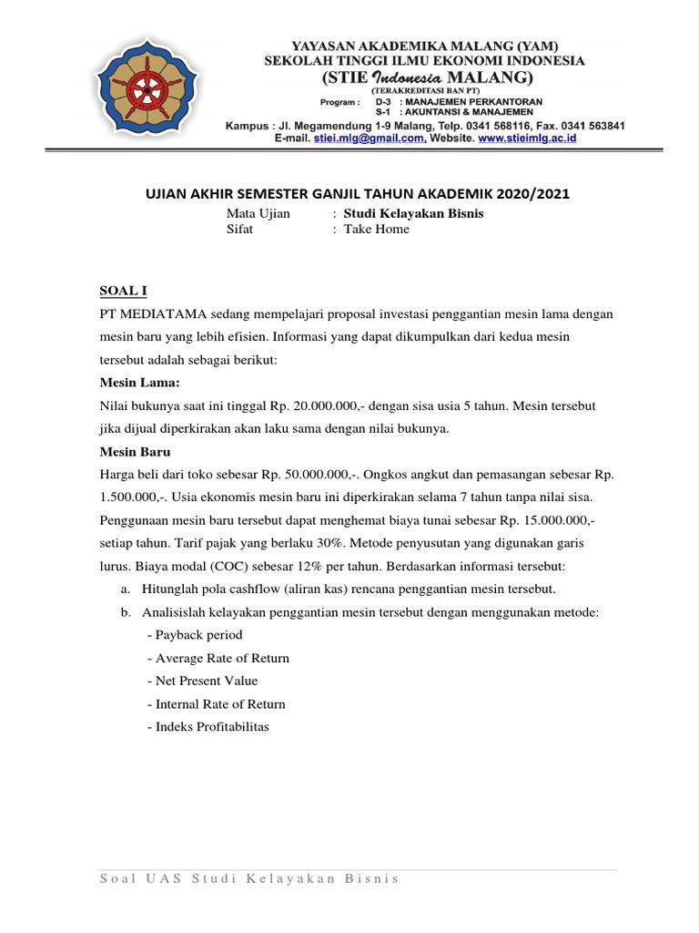 Ujian Akhir Semester Uas Studi Kelayakan Bisnis Purwantoro. Zero coupon bands d. Admin blog Contoh Soal Terbaru 2019 juga mengumpulkan gambar-gambar lainnya terkait contoh soal dan jawaban studi kelayakan bisnis dibawah ini.