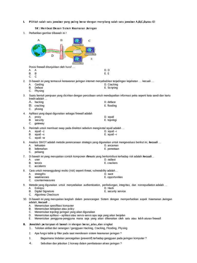 Soal Dan Jawaban Keamanan Jaringan Xii Tkj